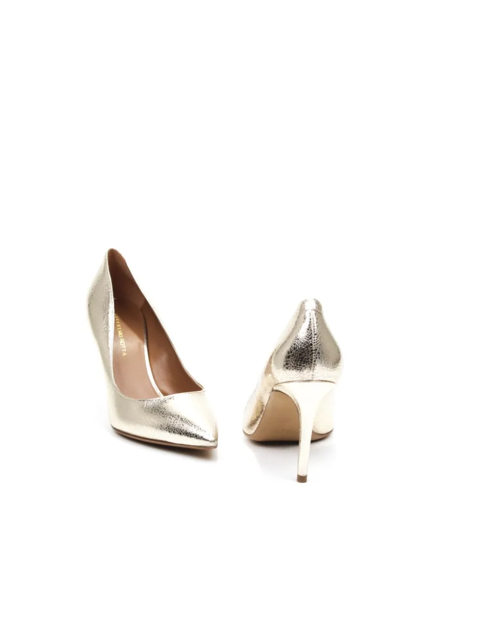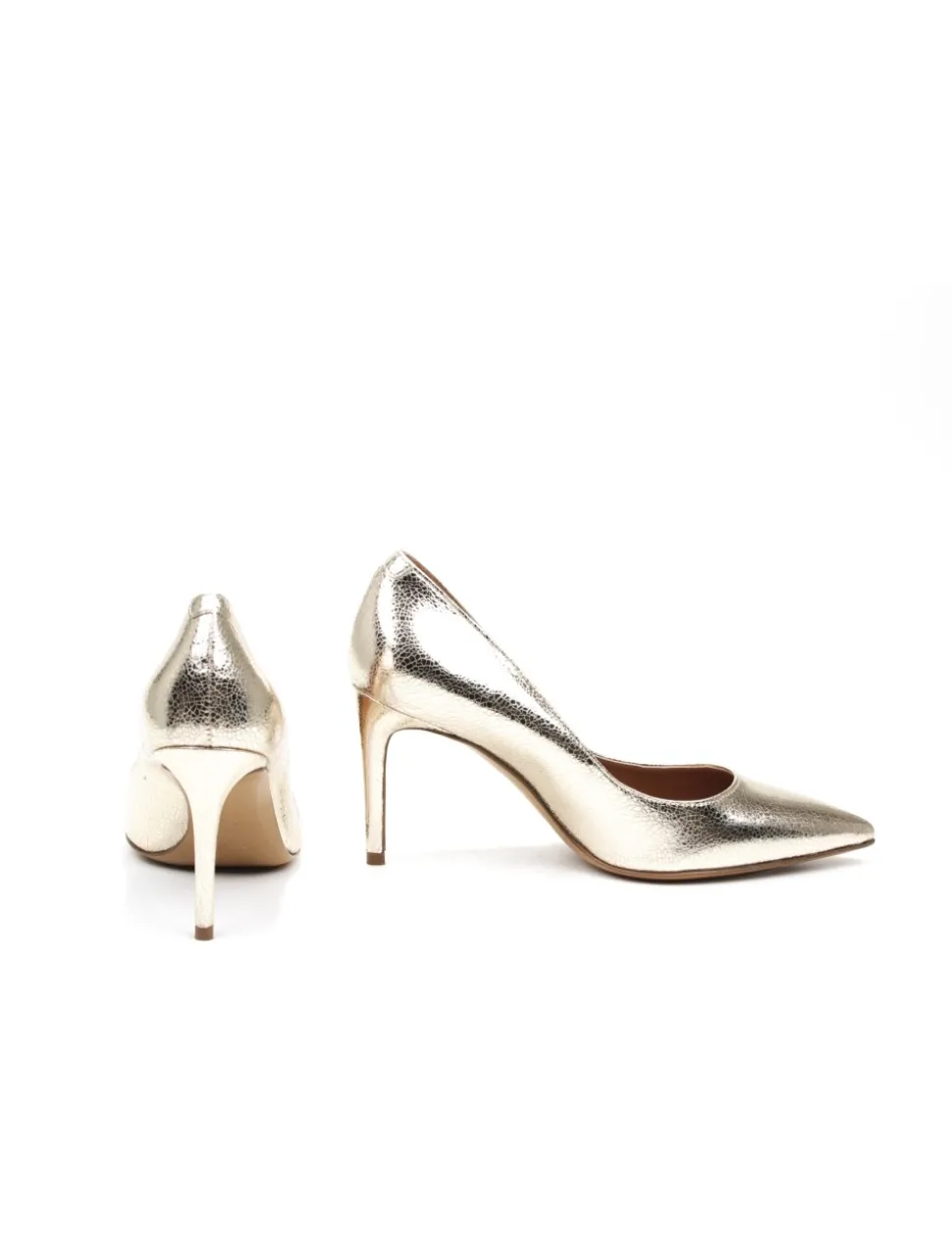 Scarpa con tacco in vitello stampato platino