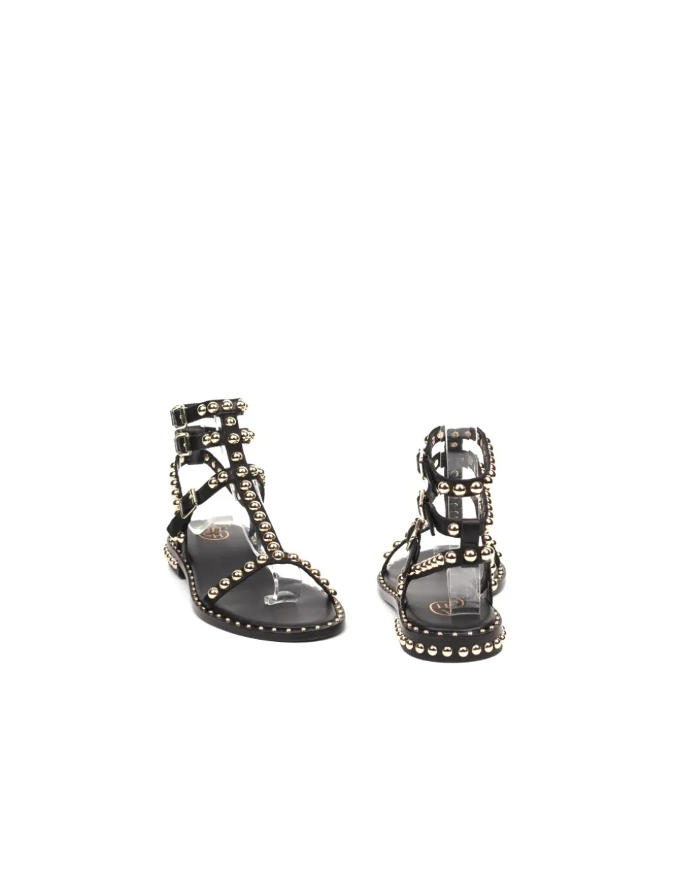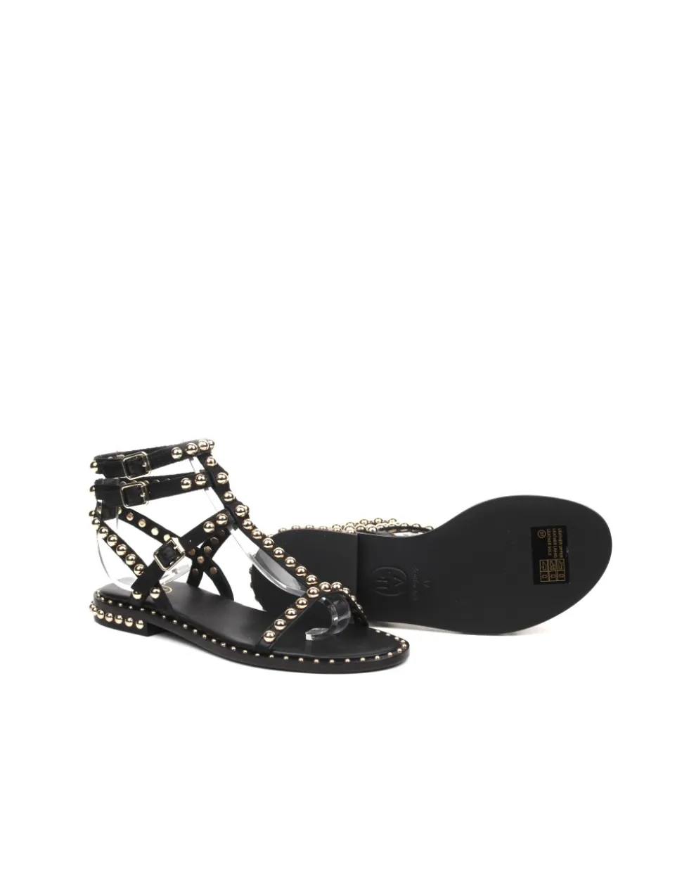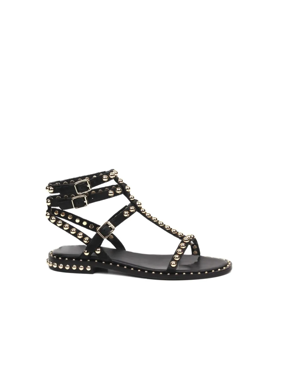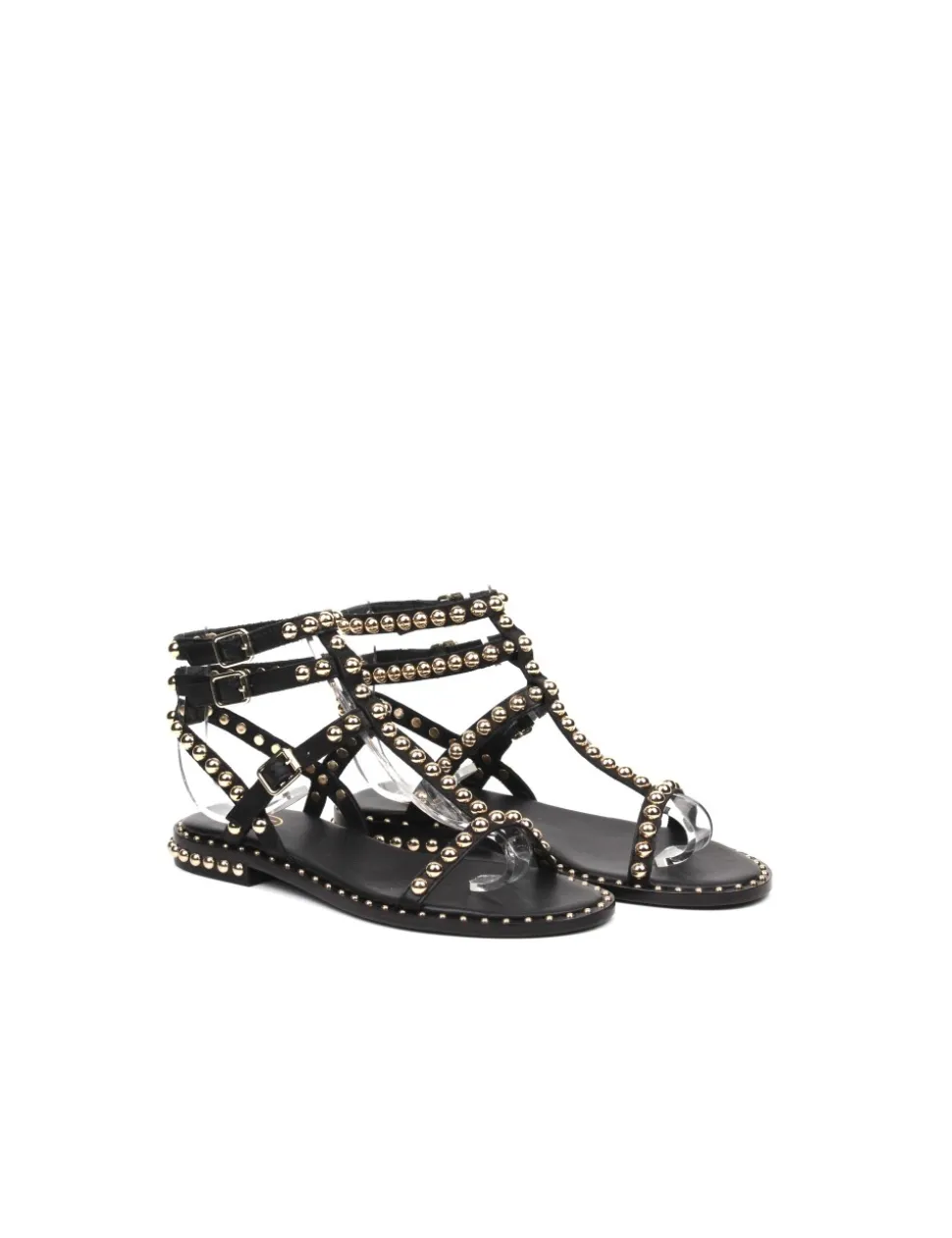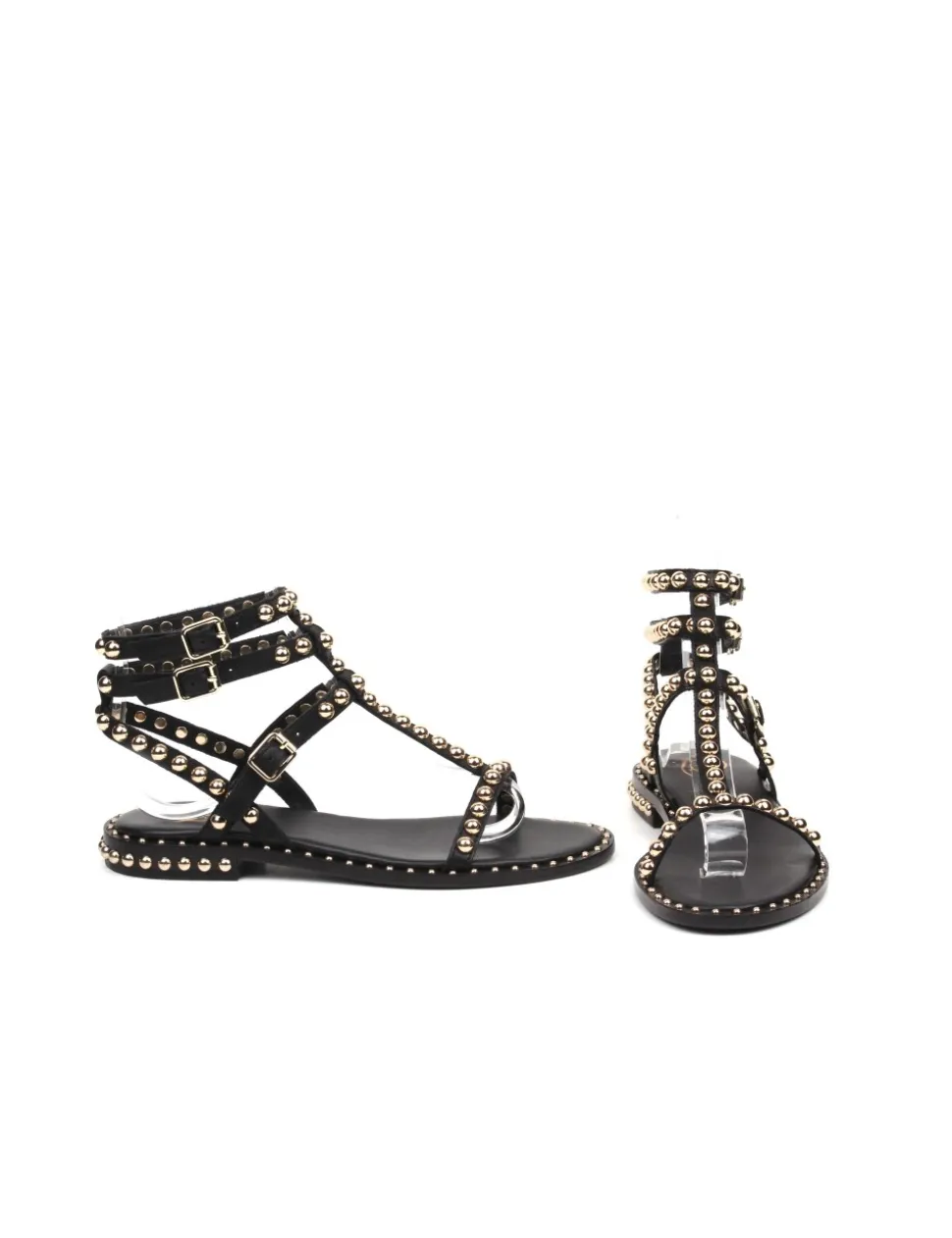 Sandalo con cinturini in pelle nera e borchie in colore oro