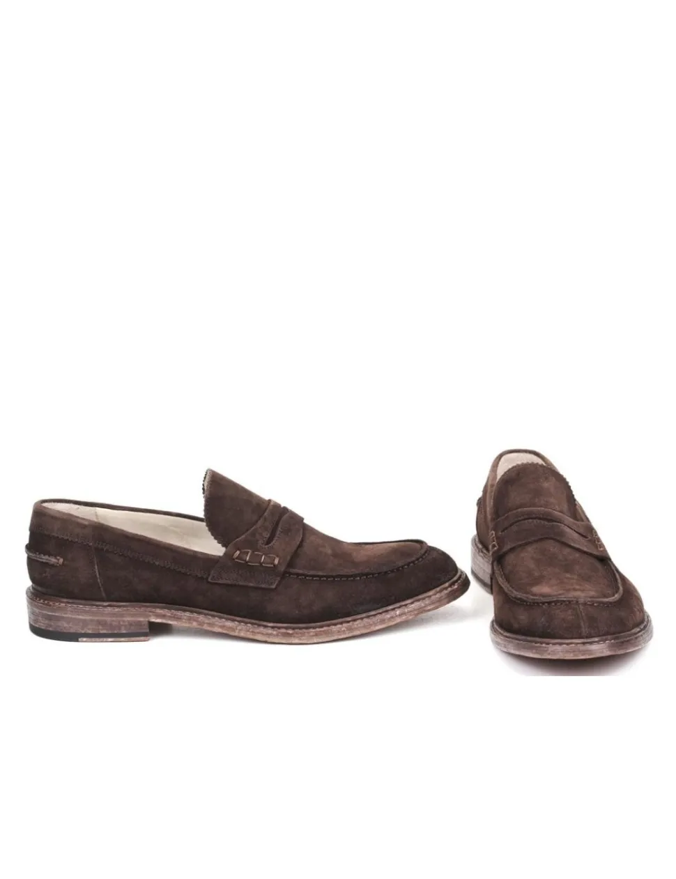 Mocassino in camoscio marrone, effetto vintage