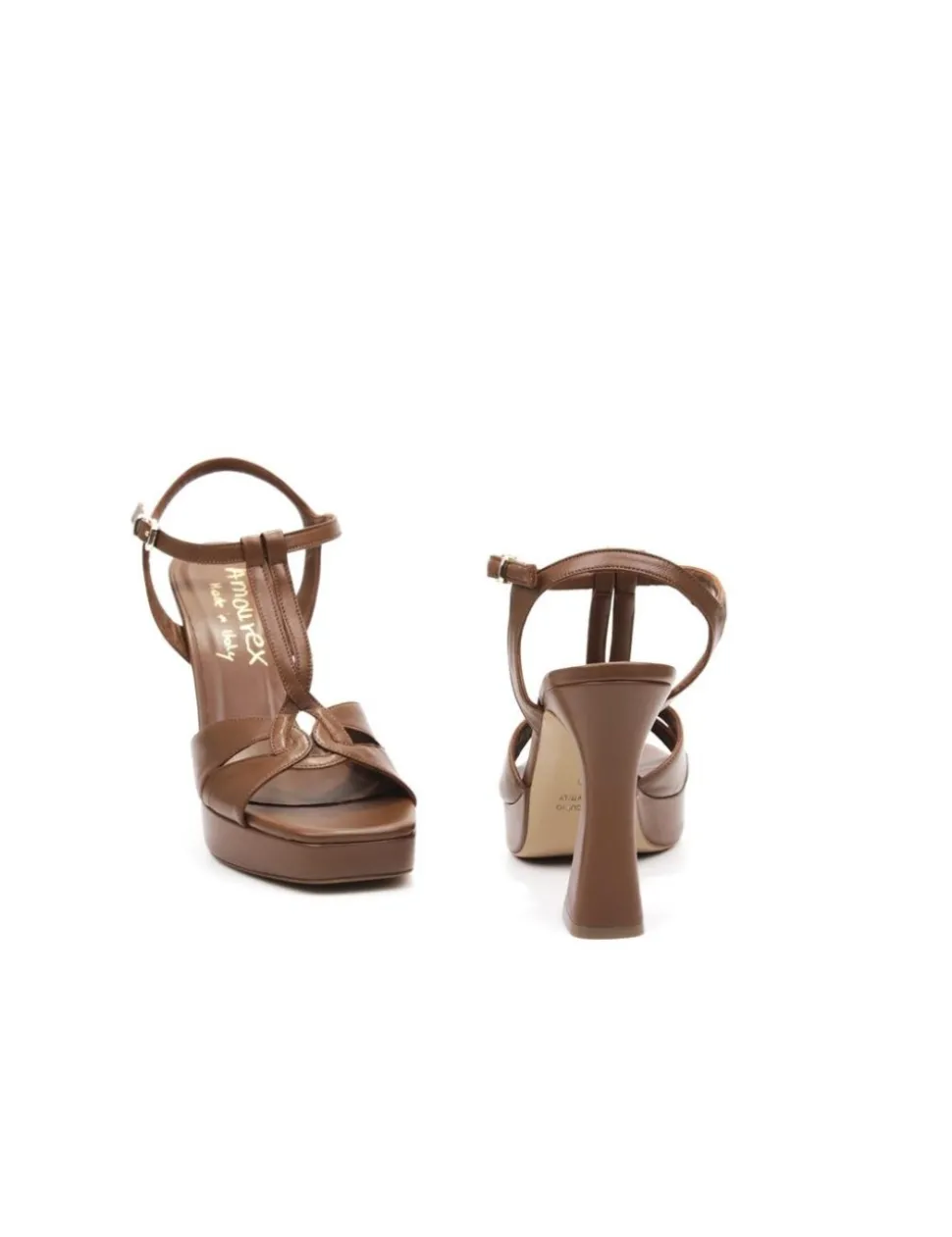 Sandalo con tacco in vitello, colore cuoio