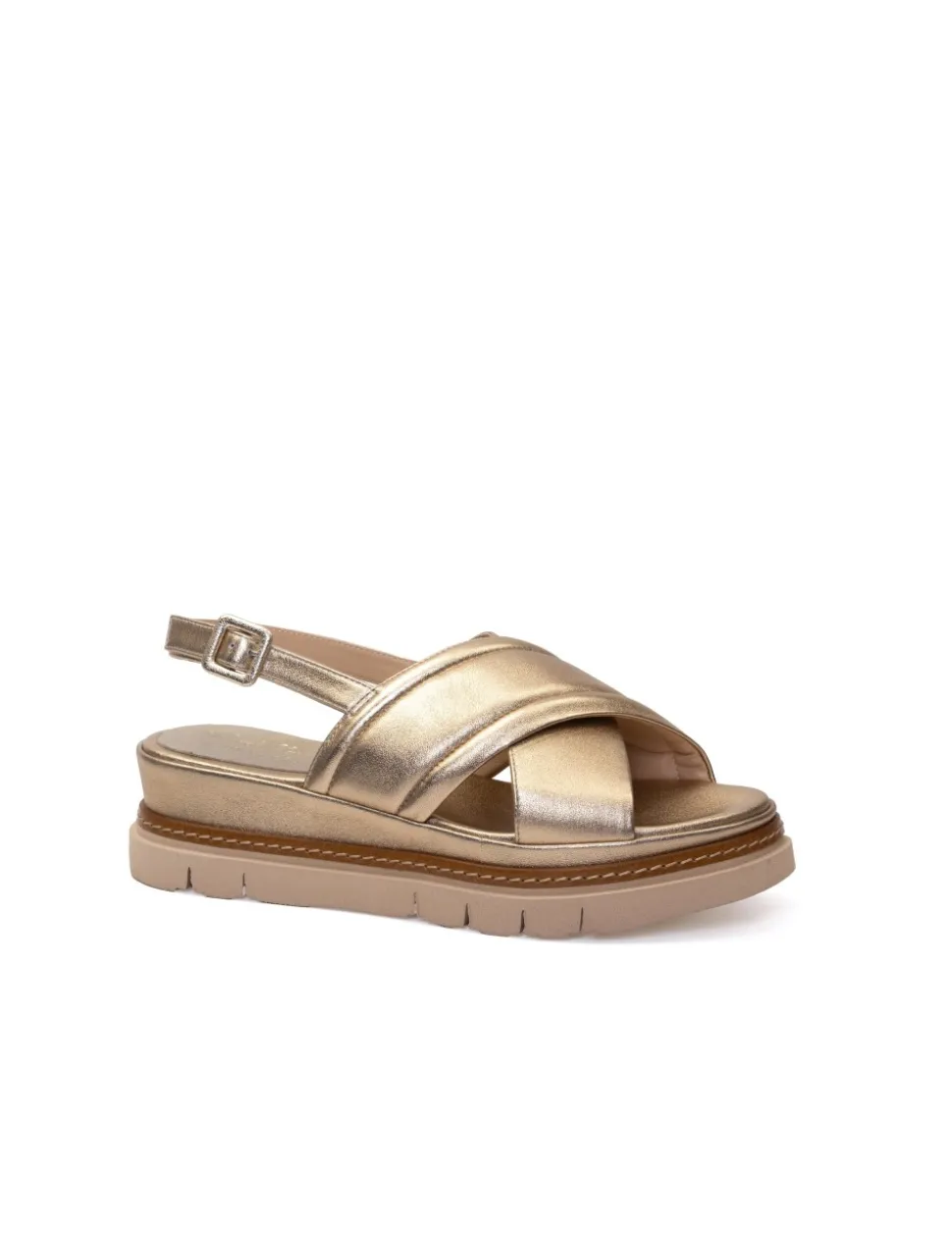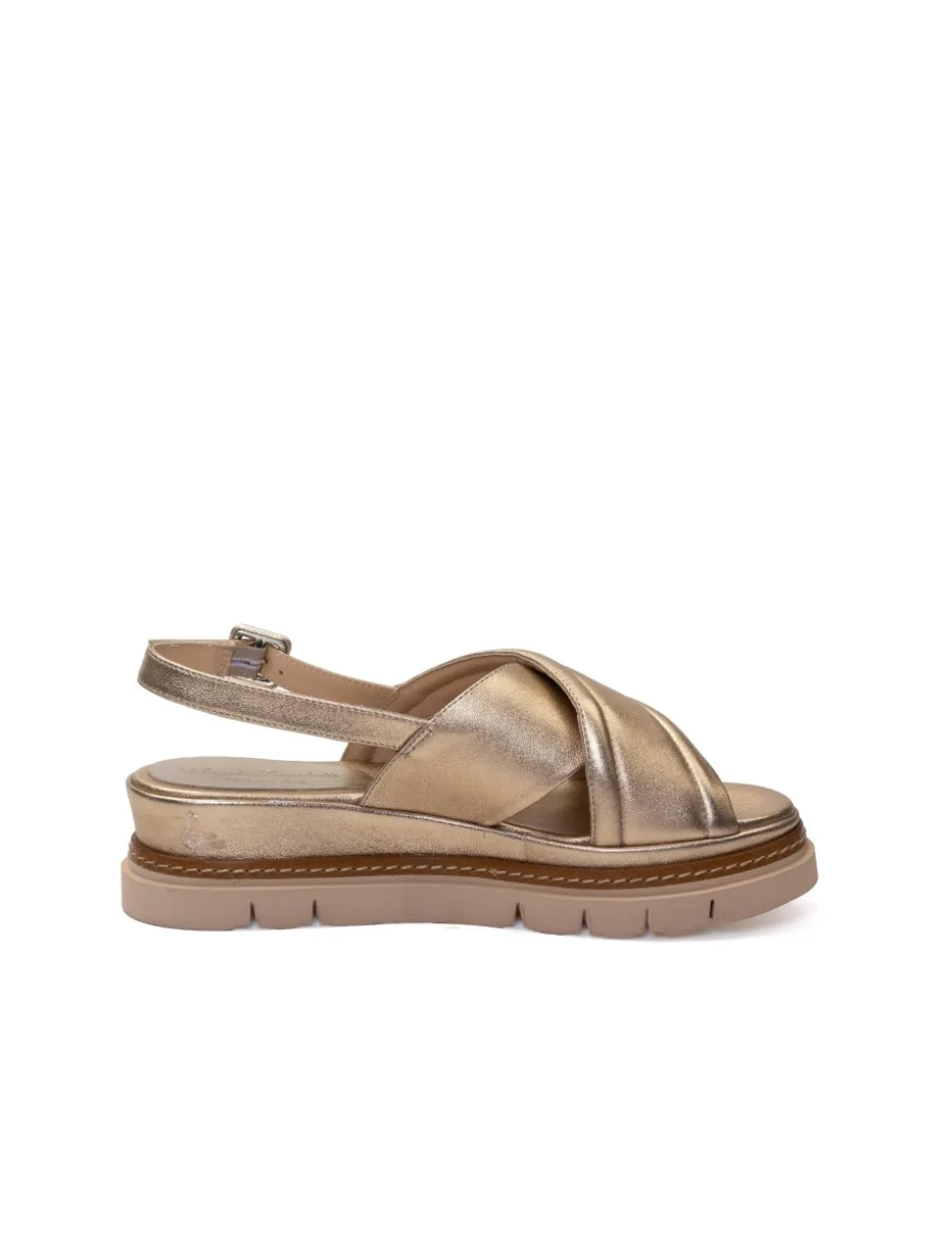 Sandalo in vitello laminato, color platino