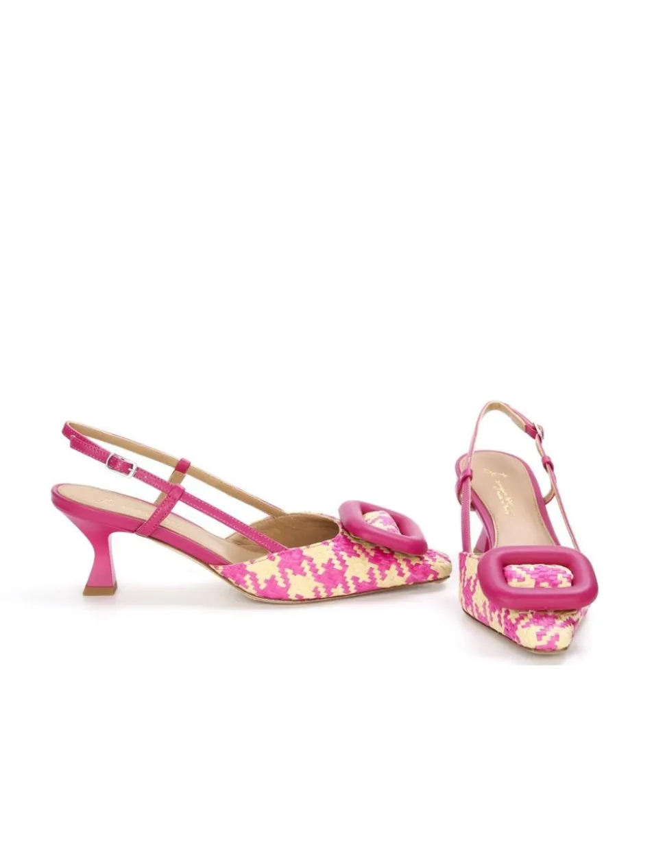 – Cinturino in pelle fucsia con inserto elasticizzato
