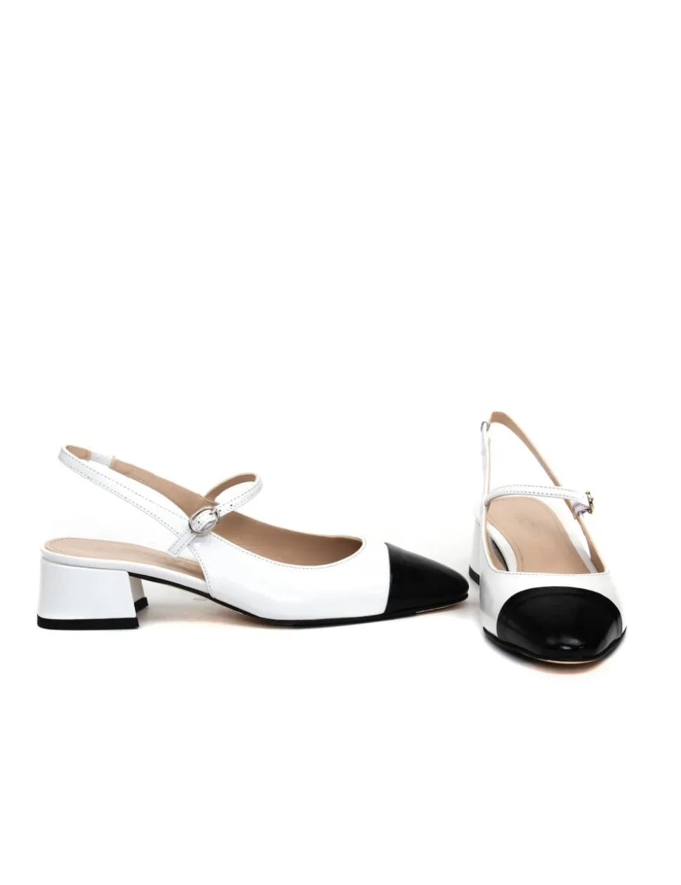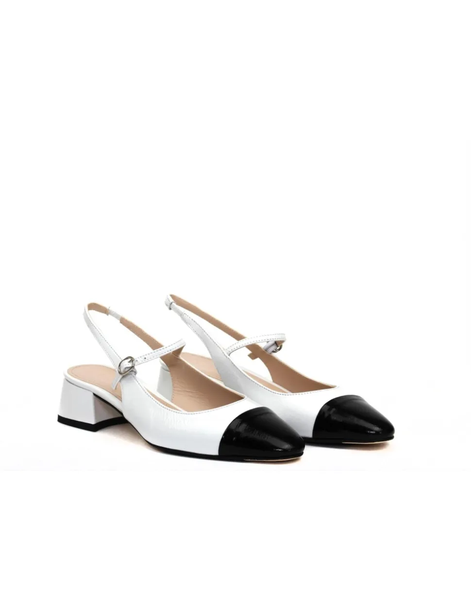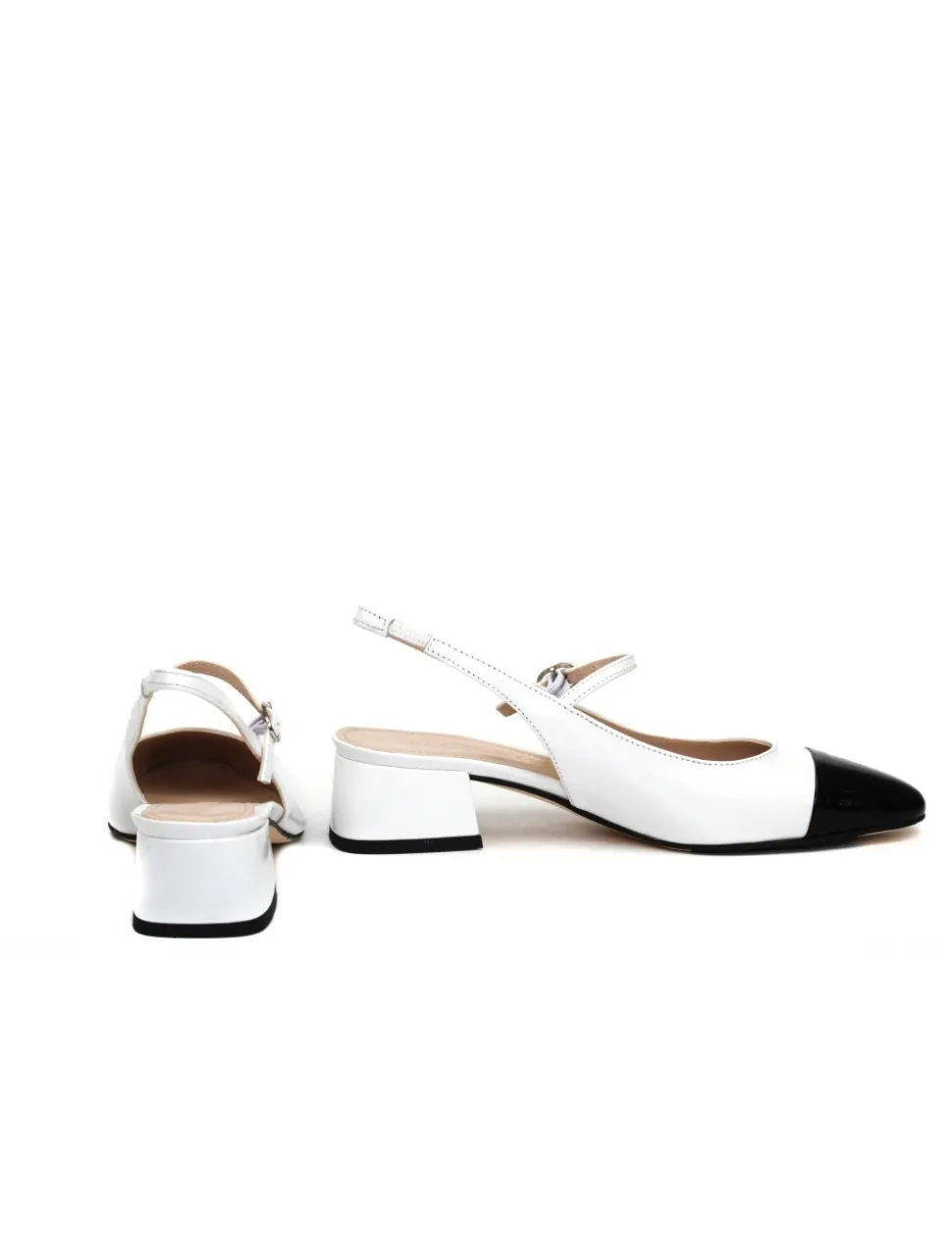 Slingback in pelle bianca e nera