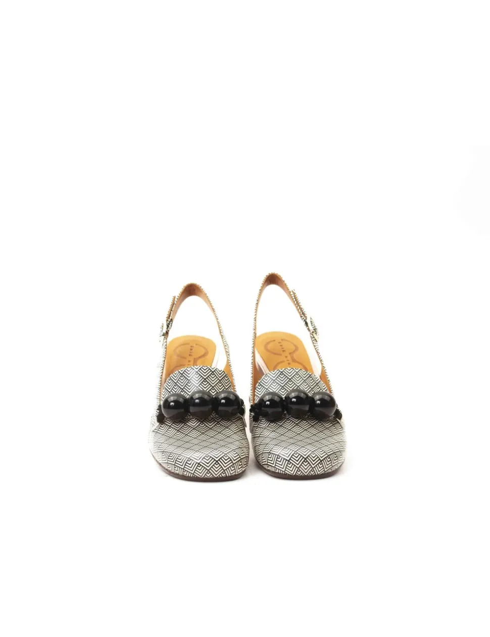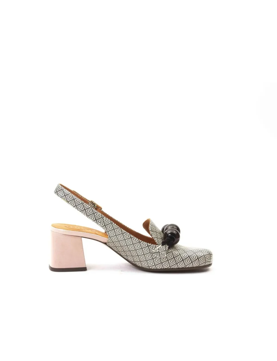 Slingback in vitello stampato con accessorio con perle nere