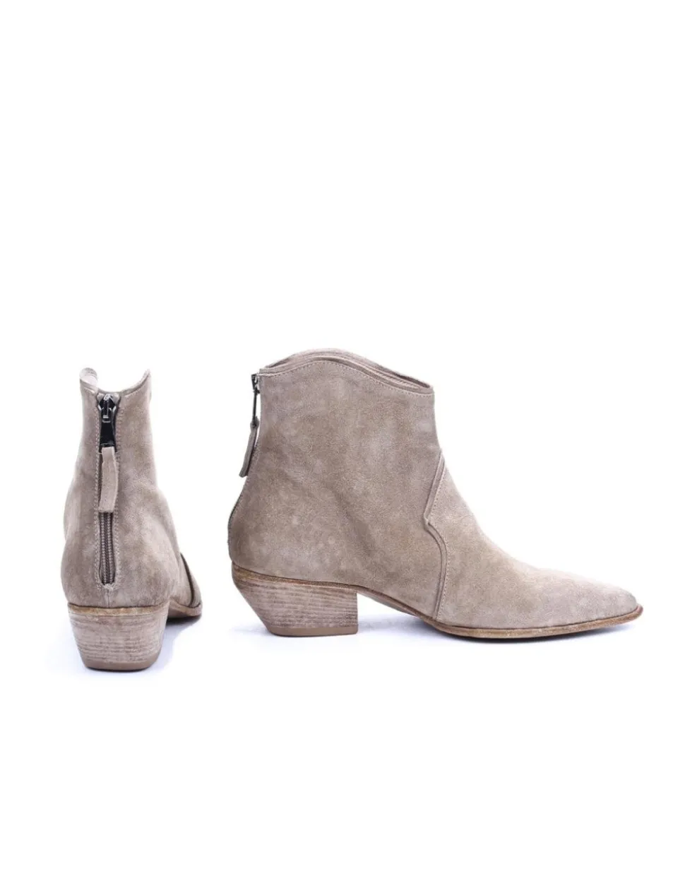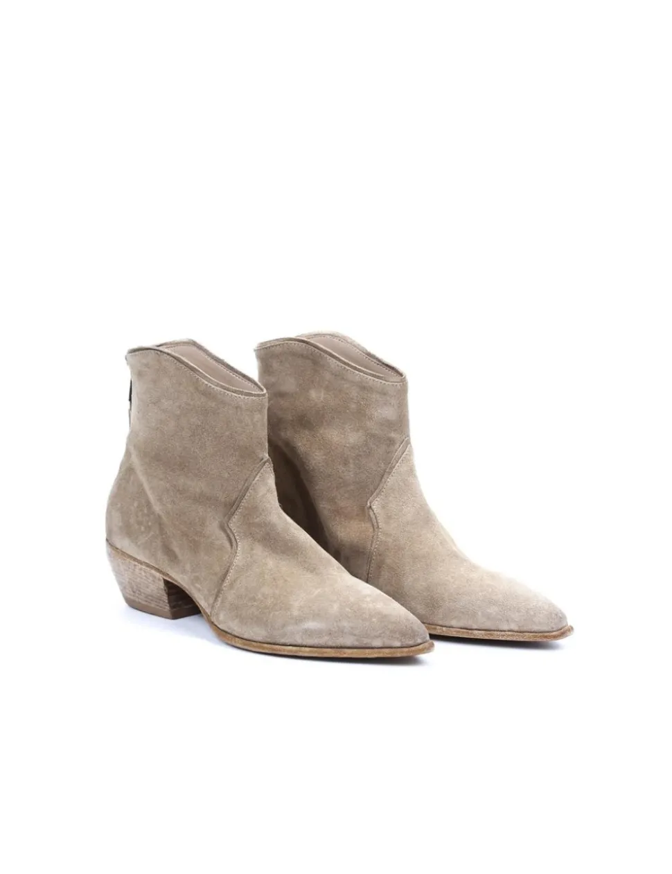 Stivaletto in camoscio avena, effetto vintage