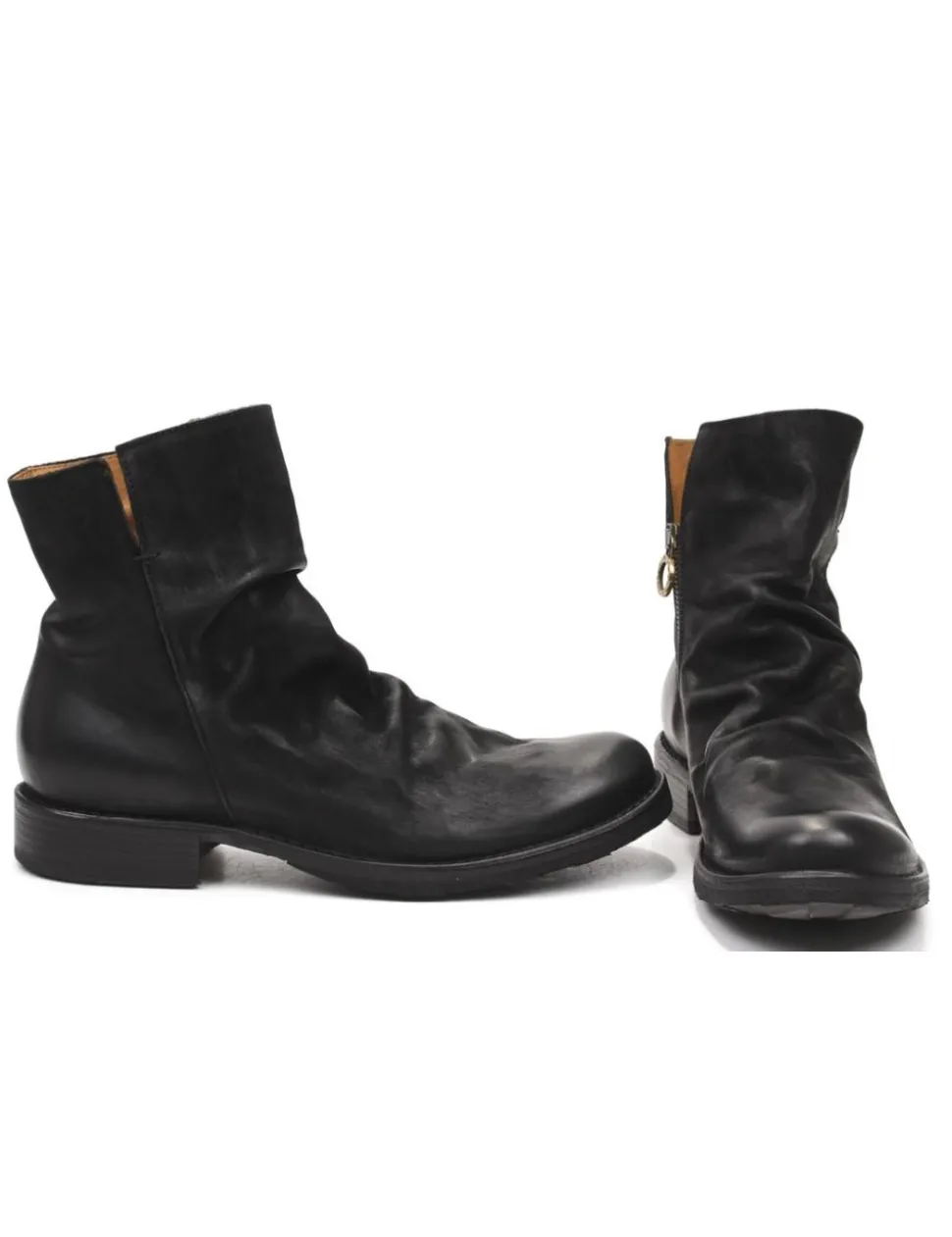 Stivaletto in vitello invecchiato nero, effetto vintage