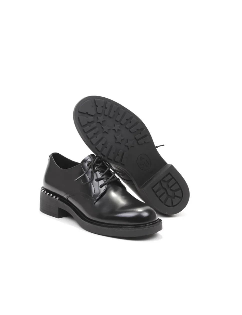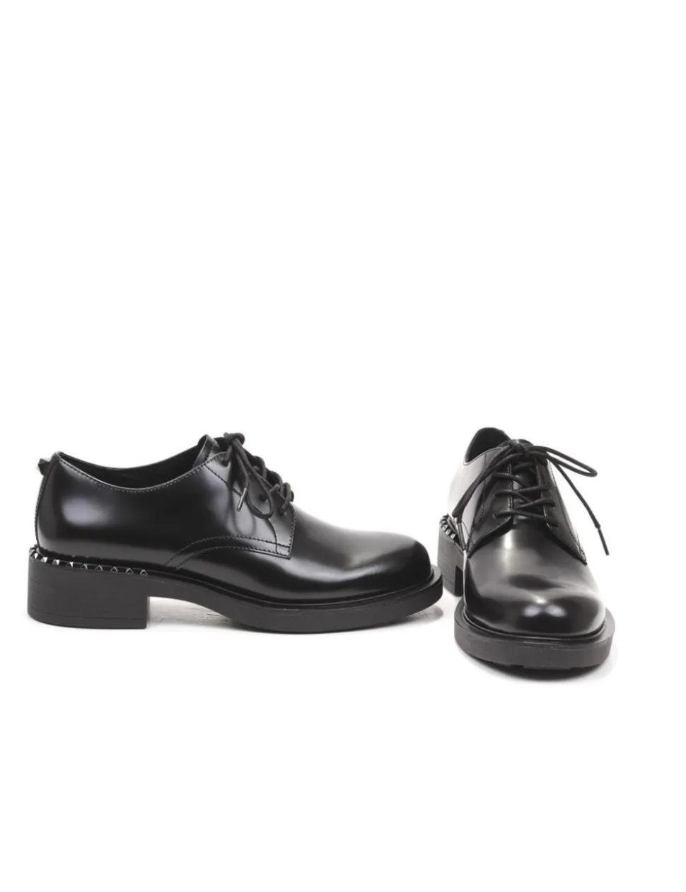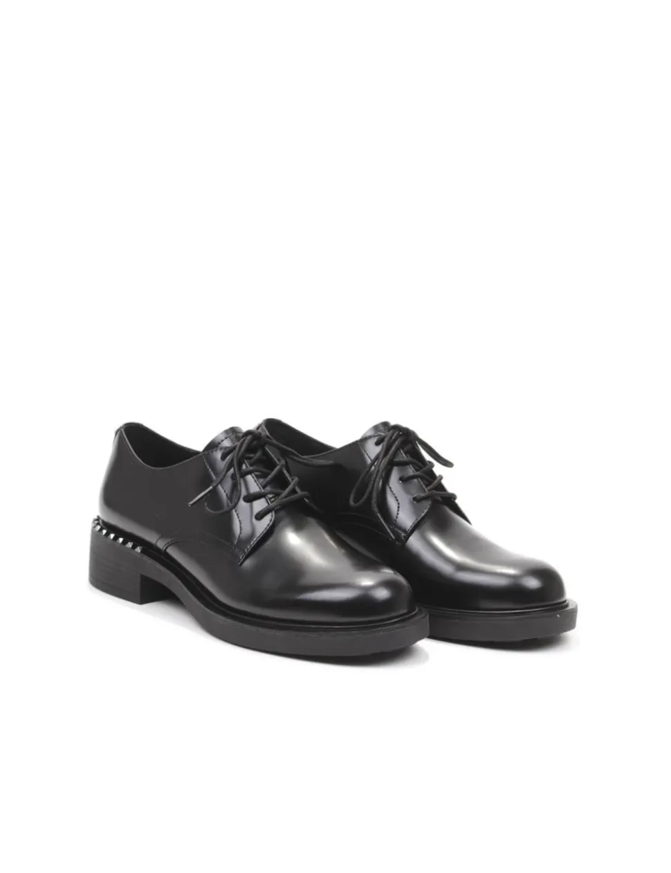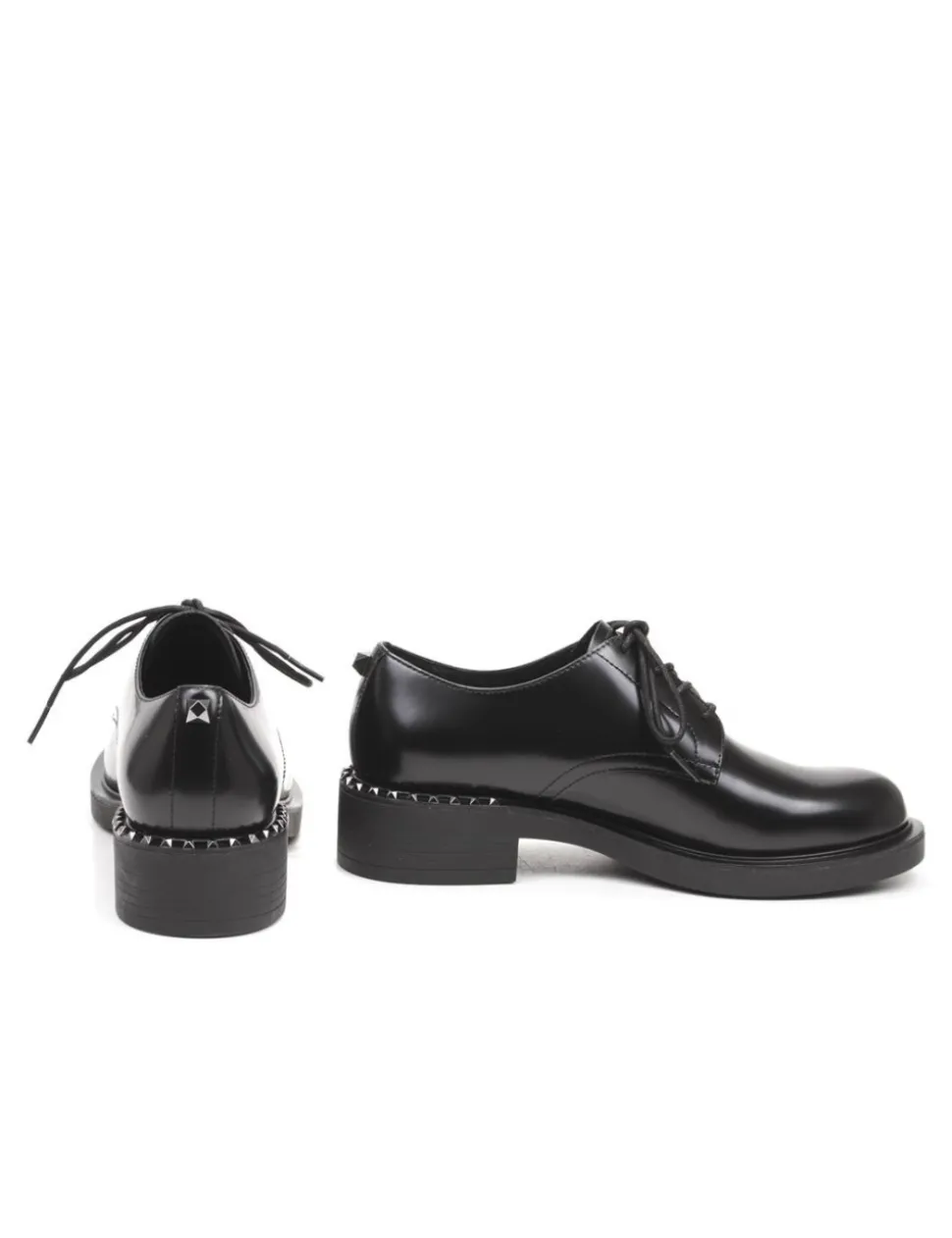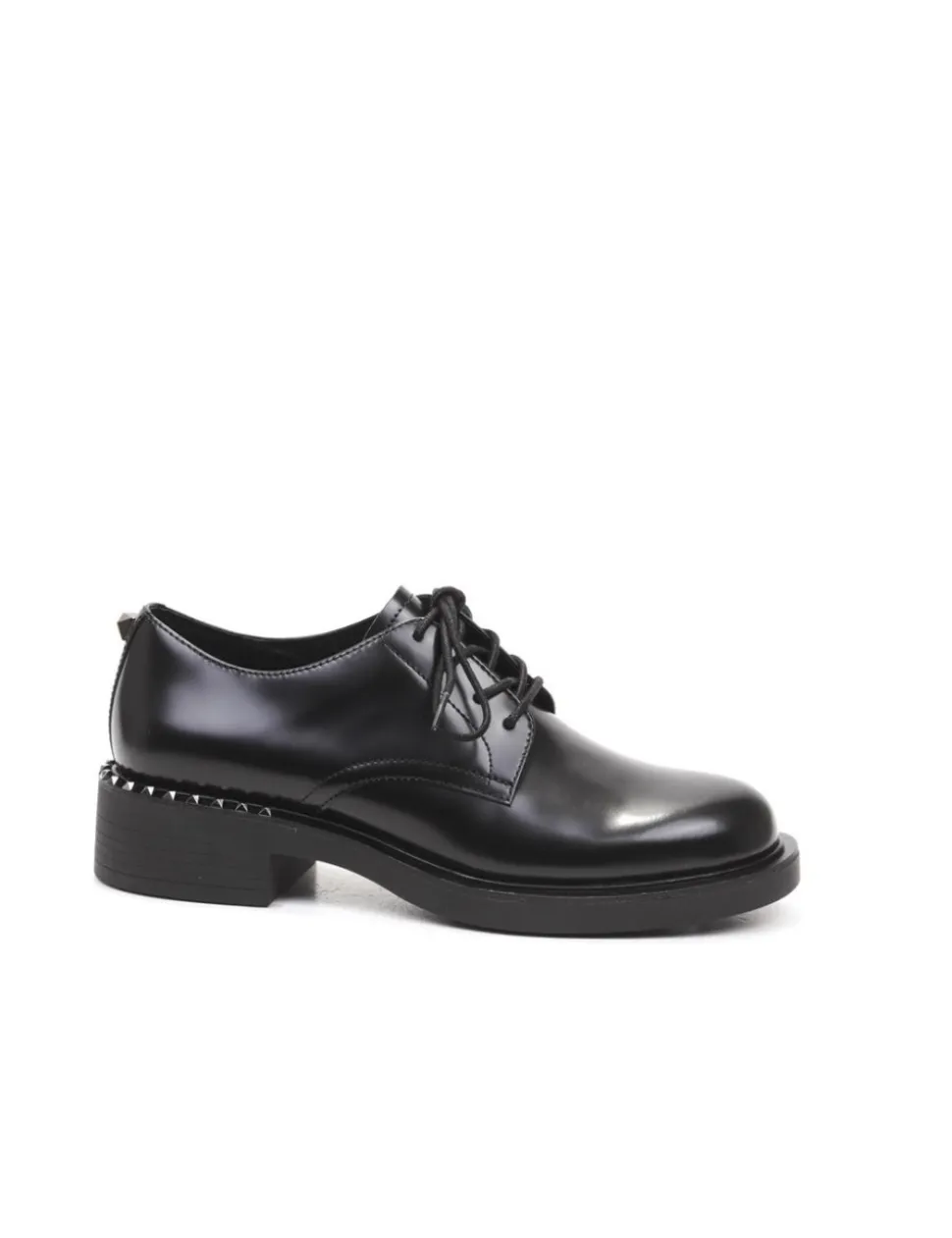 Stringata in pelle spazzolata nera